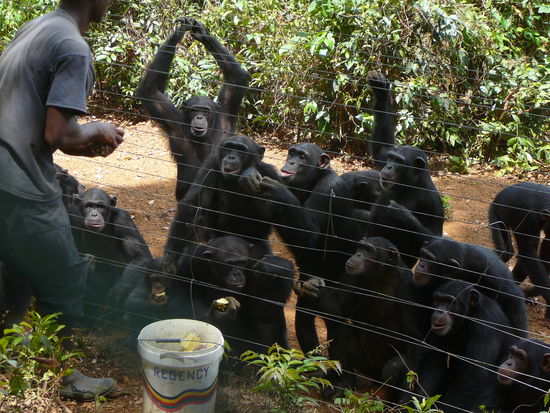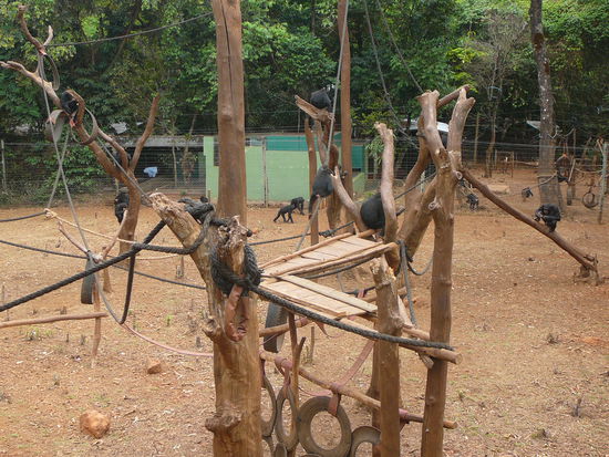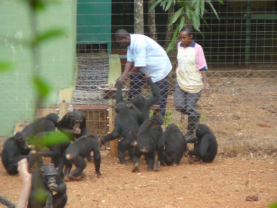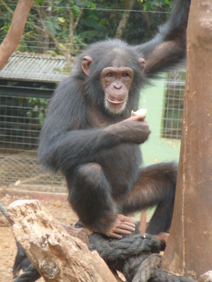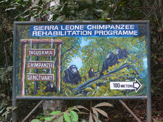 In 45 Fahrminuten Entfernung von Freetown liegt das Tacugama Chimpanzee Sanctuary, ein Rehabilitations- und Auswilderungszentrum für Schimpansen, die zu Waisen wurden oder aus Gefangenschaft befreit wurden. Gerne werden die Tiere, die uns Menschen am ähnlichsten sind, noch immer als Haustiere gehalten. Das ist natürlich von Anfang an Tierquälerei, aber, solange sie klein sind, für die "Pflegeeltern und -kinder" ganz drollig. Doch mit zunehmendem Alter werden sie körperlich zu stark und zu aggressiv für die Haltung. Der Park scheint prima geführt zu sein und das Konzept stimmig, denn neben dem Kümmern um die Chimps steht auch die Schärfung des Bewusstseins der Bevölkerung für die Probleme dieser bedrohten Art im Mittelpunkt der Arbeit.