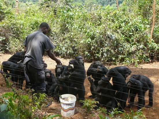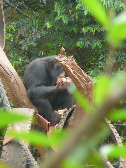 Ich weiß nicht was ich mir unter dem Besuch vorab vorgestellt habe, vielleicht dass ich ein paar süße Fotos von mir und einem Schimpansenbaby mit Milchfläschchen auf dem Arm bekommen würde. Aber das ist natürlich dämlich, sollen die Tiere doch gerade vom Menschen entwöhnt werden. So bleibt neben der informativen Führung eines Rangers das Zuschauen bei der Fütterung der vier im Park befindlichen Gruppen aus einiger Entfernung.