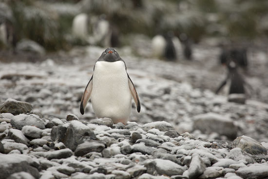 In der Nacht ist das Schiff zur Godthul Bucht weitergefahren. Der erste Blick aus dem Fenster offenbart eine signifikante Wetteränderung. Es ist nebelig und schneit. Trotzdem findet wie geplant die Anlandung in der Godthul Bay statt. Die relativ kleine Bucht ist die Kinderstube der Eselspinguine, Robben und See-Elefanten. Während unseres Aufenthaltes in der Bucht wird aus Schneegriesel Regen. Nach eineinhalb Stunden sind wir komplett durchnässt und wechseln vom Strand an die Kaffee Bar.