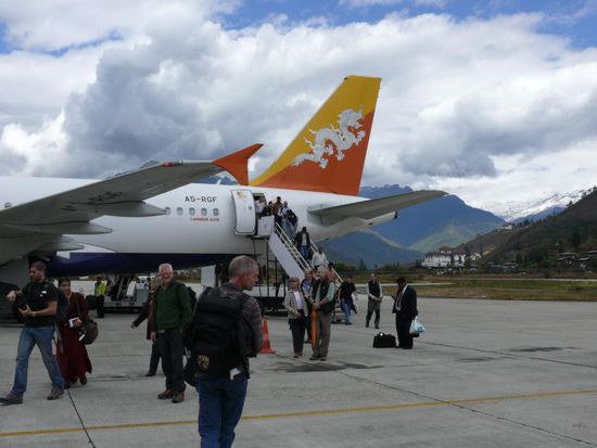 Gegen 10.30 Uhr flogen wir zum Landeanflug durch das Parotal nach Bhutan rein, sehr gute Pilotenleistung, und landeten in Paro/Bhutan.