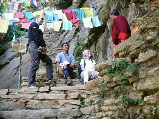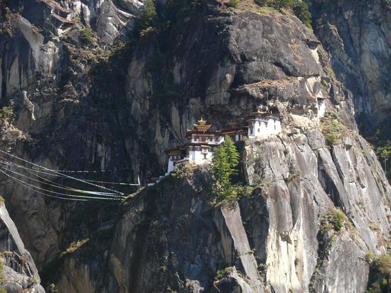 Herrlichstes Wetter und um 9 Uhr fuhren wir zum Parkplatz, um zum berühmten Tigernest aufzusteigen. Das ist ein Kloster, welches auf ca. 3000 m quasi im Fels klebt.