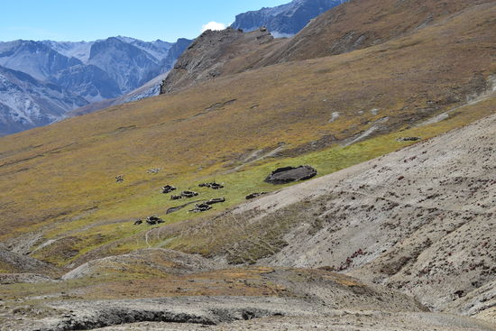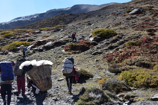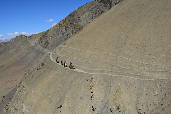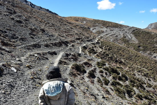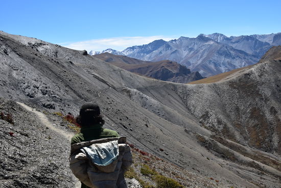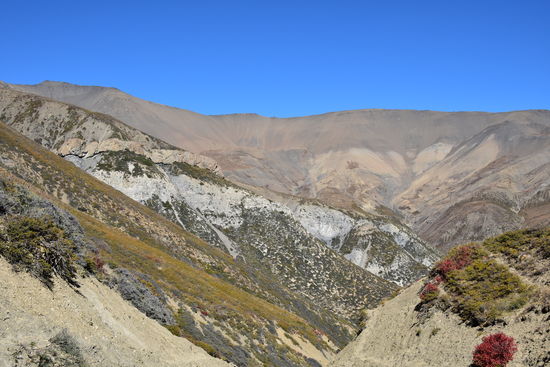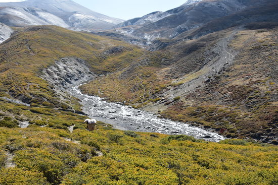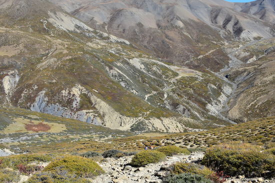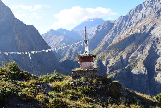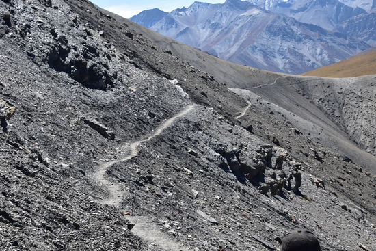 Leider wieder eine schlechte Nacht. Habe bis 22:30 geschlafen und ab da gehustet bzw. dann gelesen und Tagebuch geschrieben.Um 7:00 sind wir dann los. Habe heute ein anderes Pferd zugeteilt bekommen. Ich habe leider erst zu späte bemerkt, dass es anstatt des obligatorischen Holzsattels nur eine Konstruktion aus 4 Kanthölzern hatte. Das Ganze durch einen Teppich gepolstert. Am Anfang war noch alles in Ordnung. Erst nach einer Weile tat es doch etwas weh.Habe die Konstruktion mit meiner Jacke gepolstert und dann ging es. Seit gestern befinden wir uns im Dolpo und ich konnte die Berge und Landschaft heute zu Pferde richtig genießen. Die Landschaft ist einfach unbeschreiblich! Da ich mich nur auf dem Pferd halten musste, konnte ich richtig viele Fotos machen. Waren dann gegen 16:30 in Shey Gompa.