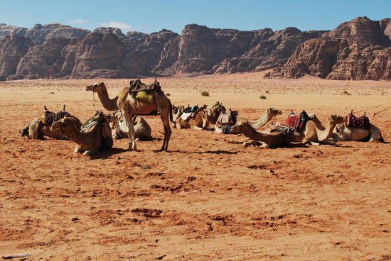 Die ganze Zeit rede ich von Kamelen, aber erst jetzt fällt mir auf, sind es womöglich Dromedare ? Schwer zu erkennen unter den ganzen "Aufbauten" auf dem/den Höcker/n. Alle in Jordanien quatschten immer von Kamelen, naja werden wohl echt Kamele gewesen sein...