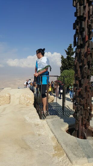Nach 2 Stunden Aufenthalt geht zu einem hohen Punkt—hier haben wir wieder einen super Blick auf das tote Meer und das Jordanland