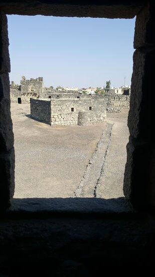 Als erstes besuchen wir das „Qaser Al Karaneh“-es ist das bekannteste und eines der besterhaltenen Wüstenschlösser—es liegt am Highway 40 und ganz dicht an der Grenze zu Saudi Arabien