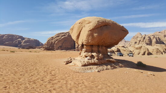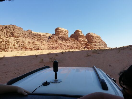 Gestern Abend habe ich an der Rezeption nach dem Public bus nach „Wadi Rum“ gefragt. Der junge Mann sagt, dass er uns gegen 6.30 Uhr vom Hotel abholt-