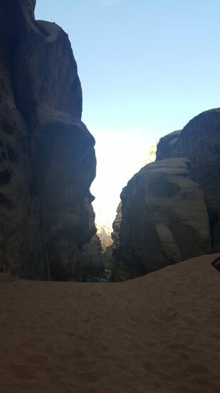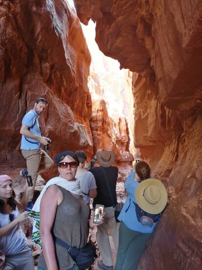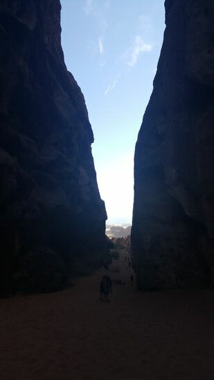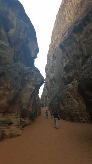 Der „Siq Um Tawaqi“ Canyon—hier werden wir abgesetzt, sollen durch die Schlucht durch laufen und am anderen Ende sammelt uns der Fahrer wieder ein