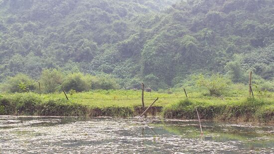 Es geht durch kleine, dunkle Höhlen, die Bootsfahrerin setzt eine Stirnlampe auf, um etwas Licht zu schaffen. Auch Einheimische gehen auf dem Flüsschen ihren Geschäften nach, und am Ende der Tour stehen Wasserbüffel etwas abseits in einem Feld. Das Leben auf und an dem Fluss scheint gemütlich. Auf dem gleichen Weg geht es zurück. Nachdem ich nichts von den Souvenirs kaufen wollte, die mir die Bootsfahrerin unterwegs angeboten hat, kaufen will, gebe ich ihr 200 000 Dong Trinkgeld, worüber sie sich sehr freut.