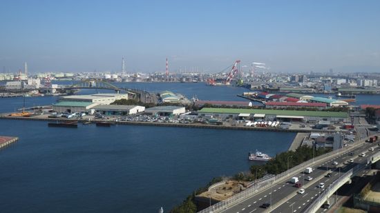 und um 7:45 sind wir auch schon auf dem Boden. Einwanderungsbehörde (kostenlose Aufenthaltserlaubnis für 90 Tage) und Zoll (deklarieren und ein Dokument abstempeln lassen, dass wir weitere ‚Waren und Güter‘ noch einführen werden) sind schnell passiert, per S-Bahn und Taxi zum ‚4 Stern‘ Hotel, im Nirgendwo in der Nähe des Hafens von Osaka, in direkter Nachbarschaft zu unserem Spediteur, das für einen frühen Bezug der Zimmer gerne JPY 8900 (etwa $85 für eine schnelle Dusche!!!???!!!) extra möchte. Sofort kommt mir Obelix mit seinem ‚die Spinnen die Japaner‘ in den Sinn, also ‚nicht mit uns‘, wir haben hier in Osaka sowieso genug zu tun. Wir lassen unser Gepäck einlagern und fahren eben ungeduscht (wen stört das schon bei Außentemperaturen <10º) mit der recht leeren S-Bahn gute 50km quer durch die Stadt