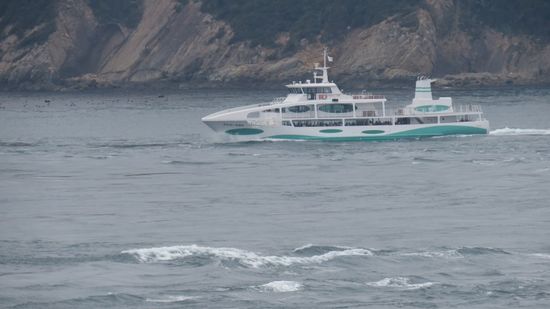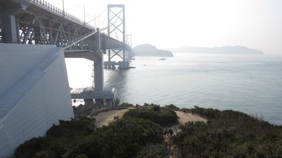 deren Aufnahme in das UNESCO Weltkulturerbe beantragt wurde. Hier, direkt unter der Brücke befindet sich ein schmaler, etwa 100m tiefer Meeresgraben mit recht steilen Flanke und einem sehr seichten Uferbereich. Bei Ebbe und Flut entstehen hier nun bedingt durch die unterschiedlichen Fließgeschwindigkeiten enorme Wasserwirbel, die natürlich von jedermann besichtigt werden müssen. Man kann dieses Naturwunder vom Boot aus nächster Nähe beobachten (JPY 2.000 pP)