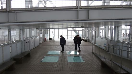 oder auf einem speziell angelegten Fußgängersteg (Parken=JPY 500+ E=JPY 510 pP) auf der Brücke ein Stück zurückwandern und dann durch in den Boden eingelassenen Glasscheiben