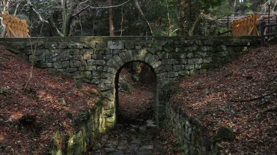 eine von 10, von den Deutschen POW errichteten Brücken bei der bisher in Japan so unbekannte Steinmetz Techniken zum Einsatz kamen. Durch das Tor des Da Ma Tempels verlassen wir diesen Bezirk