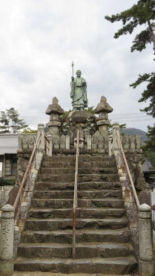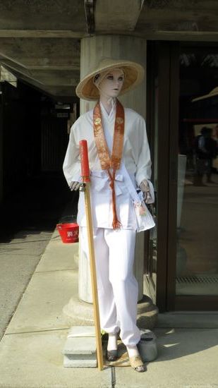 stehen am Beginn einer 1.142 km langen Wanderung, Pilgerreise, dem japanischen Jakobsweg, zu 88 über die Insel Shikoku verstreuten Tempeln, einst von Kobo Dashi (774-835), auch Kukai genannt ins Leben gerufen und heute immer noch praktiziert. Eigentlich wollten wir zumindest Teile diese Weges selbst zurücklegen, aber nachdem wir lernen, dass allein so ein standesgemäßes Outfit