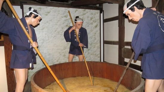 und lernen auf dem Rückweg, wieder drunten im Ort wie Sake, der traditionelle japanische Reiswein hergestellt wird.