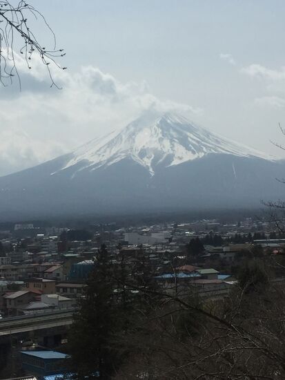 Wir haben von der Chureito Pagode einen tollen Blick auf den Fuji Berg. Die Pagode leuchtet in strahlendem Rot wunderschön vor der weißen Kuppe des Fuji Berges. Sie ist jüngeren Datums und wurde auf Initiative des Bürgermeisters der Stadt Fujiyoshida in den 1950er Jahren zu Ehren der knapp 1000 Bürger der Stadt errichtet, die in den Kriegen nach der Meiji-Restauration 1868 ihr Leben für Japan ließen, einschließlich des Pazifik-Krieges während des 2. Weltkrieges. Sehr ambivalent! Die zahlreichen Kirschbäume um die Pagode herum lassen den Anblick, sofern die Blüten in voller Pracht stehen, erst richtig zur höchsten Vollendung bringen. Aber nun dürfen wir schon den Fuji-Berg sehen, die Blüten hatten wir am Vortag in Tokyo. Hier, gut 800 Meter über dem Meeresspiegel, brauchen die Knospen noch ein paar Tage zum Aufblühen.