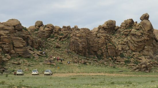 Ziel: Weiter durch die Gobi von Mandalgov über die Felsformationen im Ikh Gazryn Chuluu NP in die Ikh Nartiin Chuluu Nature Reserve, Richtung Osten ins Grasland bis Baruun-Urt, über Choibalsan nach Dadal und schliesslich finden wir einen Naadam in Chinggis Khot.