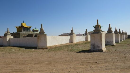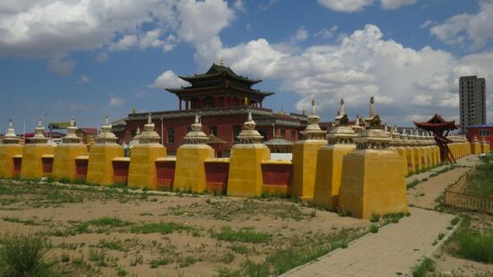 wir sind im mongolischen Grasland angekommen. Die nächste größere Stadt hier in der Gegend, Baruun-Urt, von Minen umzingelt und drinnen dieser Tempel von 108 Stupa umrahmt.
