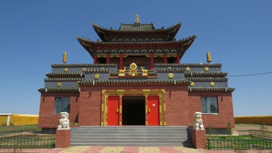 Tuvshinshiree, die nächste der Ortschaften, die hier entlang der Piste aufgereiht sind, überrascht mit diesem alten Tempel.