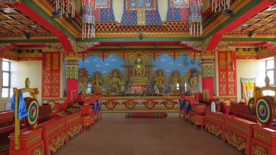 wo neben geteerten Dorfstrassen auf einer Anhöhe ein neuer Tempel von Aussen