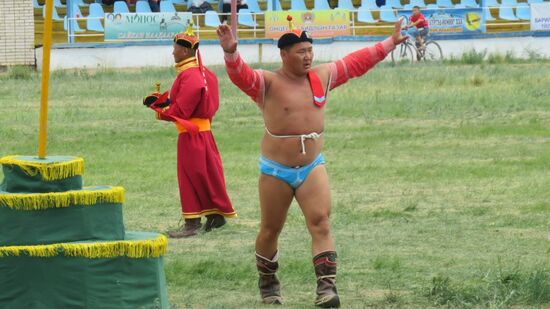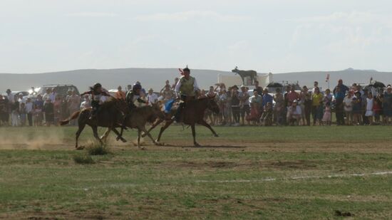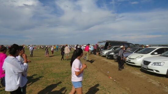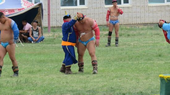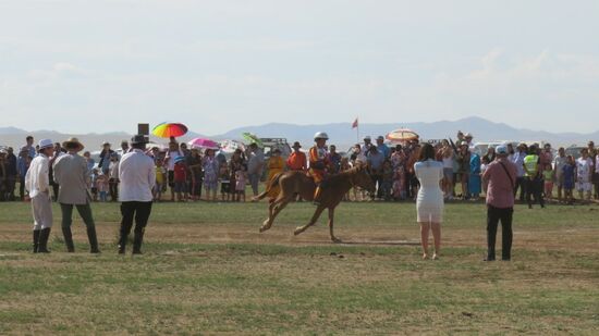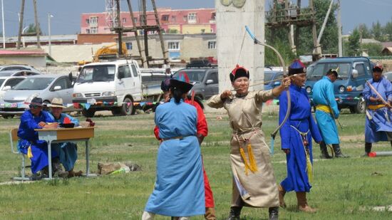 Naadam = Spiele, eine Fest das i.A. um den 11. Juli begangen wird, aber jeder Stadt, jeder Gemeinde kann ihren eigenen Termin festlegen. Naadam das bedeutet Ringkämpfe, Bogenschießen-Wettbewerbe und Pferderennen sowie ein Treffen mit Freunden und Familie, Essen Trinken – und so auch hier: