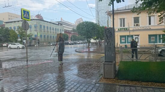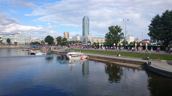 Für Ekatarinenburg habe ich zwei Tage Zeit. Am zweiten Abend ist in der Stadt die Ural Music Night. In der ganzen Stadt gibt es Bühnen mit unterschiedlichem Musikangebot. Ein japanischer Rockmusiker am Jelzin Center zieht die Aufmerksamkeit auf sich.