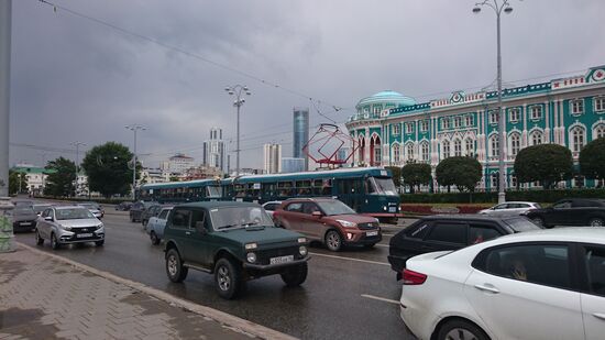 Ekatarinenburg ist noch strahlender und gewaltiger als Krasnojarsk. Morgens um 6 in den autoleeren Straßen verstärkt sich dieser Eindruck noch. Ich fahre mit dem Rad zu meiner Unterkunft, die in einem Wohngebiet in Innenstadtnähe liegt. Auch hier, wie überall in Russland bekommt mein Fahrrad einen geschützten Platz. Meist gucke ich erstmal in überraschte oder entsetzte Gesichter, aber dann wird immer eine gute Lösung gefunden.