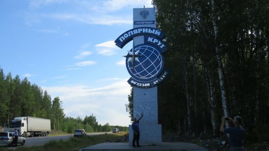 Wir fahren stundenlang weiter Richtung Norden, in der Ferne glänzt das Weiss Meer und irgendwann überqueren wir den Polarkreis,