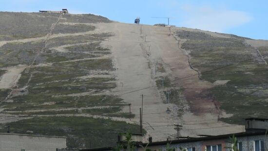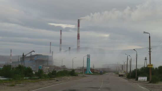 In Manchegorsk, der nächsten Bergbau- und Hüttenstadt, direkt an der R21 gelegen rauchen die Schlote,
