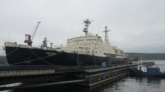 im dank Golfstrom immer eisfreien, sehr geschäftig wirkenden Hafen hat Lenin, der erste nuklear betriebene Eisbrecher seinen letzten Liegeplatz gefunden