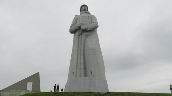 und droben auf einem Hügel wacht Alyosha in Erinnerung an die im WWII gefallenen Kämpfer in der Arktis.