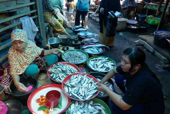 Außer den vielen verschiedenen Gerüchen, die ein Markt so her gibt, riecht es hier auch sehr nach frischen Blumen, Räuchetstäbchen, Fisch, Obst und rotem Fleisch. Allen Fischsorten geht es auf dem Markt besser, als dem Fleisch, denn diese liegen immer im Eisbett. Das Fleisch eher nicht. Aber da in Asien das Essen immer sehr heiß gekocht wird, stirbt da alles ab, reden wir uns zumindest ein.