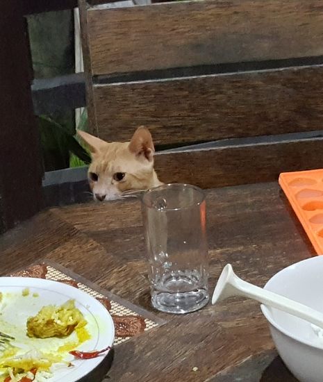 Abends sind wieder alle zurück und gibt es dann doch nur Fisch ...man beachte den frechen Gast, der immer mit am Tisch sitzt...