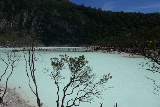 Eigentlich wollten wir noch zu den heißen Quellen des Kawa Cibuni, hier war jedoch zu viel los! Bedingt durch das lange Wochenende in Indonesien, sind gefühlt alle Indonesier hier zum Baden. Also nicht zu den Quellen und weiter zum Situ Patengan, ein Bergsee auf 1500m Höhe inmitten von Teeplantagen und Wäldern.