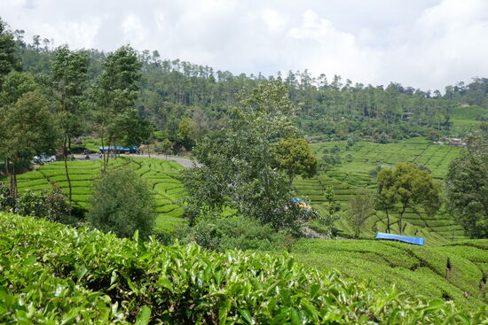So nach dem Kratersee führt die Straße an der Riesigen Rajabali Teeplantage entlang...