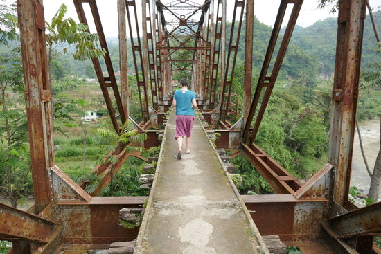 Irgendwo auf dem Rückweg sind wir dann noch an dieser alten Eisenbahnbrücke vorbeigekommen, die nun als Roller und Fußgängerbrücke benutzt wird, so ganz ohne Geländer ein kleiner Nervenkitzel...