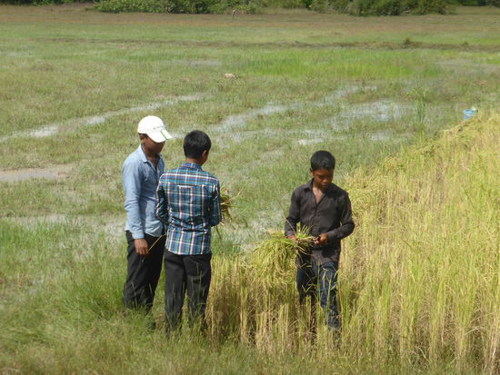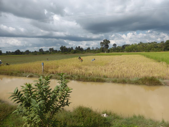 Das Programm wurde im Laufe des Tages wegen der ungewissen Check-out –Time umgeworfen. Nun fahren wir wie bisher gehabt bereits um 8.00 Uhr los, um auf dem großen See die floating Dörfer zu sehen, die wahrscheinlich die Armut der Gegend noch deutlicher zu Tage treten lassen. Schon Siem Reap ist die zweitgrößte aber auch zweitärmste Stadt trotz der Millionen Besucher, deren Eintrittsgelder wohl nicht bei der Bevölkerung anzukommen scheinen. Vom Hotel Pavillon d’Orient (13*21’54“N/103*52’49“E) geht es die Nationalstraße Nr6 stadtauswärts (13 17 20/ 104 03 47) bis wir in einem lebhaften Ort nach Süden abbiegen. Nach wenigen Kilometer liegen rechts und links der Straße Wasserflächen mit Reispflanzungen – dort wo es noch seichter ist, ist Gemüse angepflanzt.