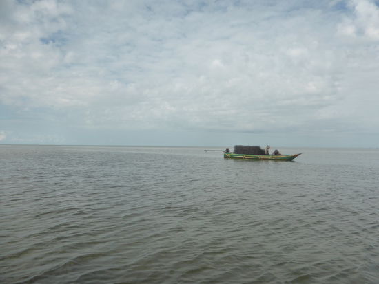 In dieser Zeit können manche Farmer um ihre Häuser herum, sogar im Boden Gemüse anpflanzen. Wir fahren mit dem Boot soweit, dass wir die Ausmaße des Sees ein wenig erblicken können. (13*04’48“ N/ 104*06’25“ E)