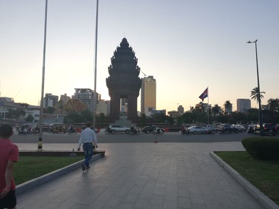 Um die Mittagszeit erreichten wir die Hauptstadt Phnom Penh (gesprochen Fnom Penn) und waren ziemlich schnell positiv überrascht. Die Stadt war nämlich gar nicht mal so übel. Ich hatte vorher gehört, dass es hier quasi nichts zu tun gäbe und alles siffig und heruntergekommen sei. Den Eindruck kann ich ganz sicher nicht bestätigen. Viel mehr hat uns überrascht, wie sauber und wohlhabend die Stadt zumindest in ihrem Zentrum daherkam. Und das drückt sich in nichts besser aus als in einer Tatsache, nämlich dass hier alles voll war mit SUVs. Geländewagen, wohin das Auge reicht. Und zwar vom neusten Model! Ich war irritiert. Angeblich, so hatte ich gelesen, sollte Kambodscha entwicklungstechnisch ein gutes Stück hinter Vietnam liegen. Der Eindruck drängt sich hier allerdings nicht auf. Aber (!) wir sind in der Hauptstadt. Und wie bereits an anderer Stelle schon einmal betont, sollte man nie von der Hauptstadt auf das restliche Land schließen.