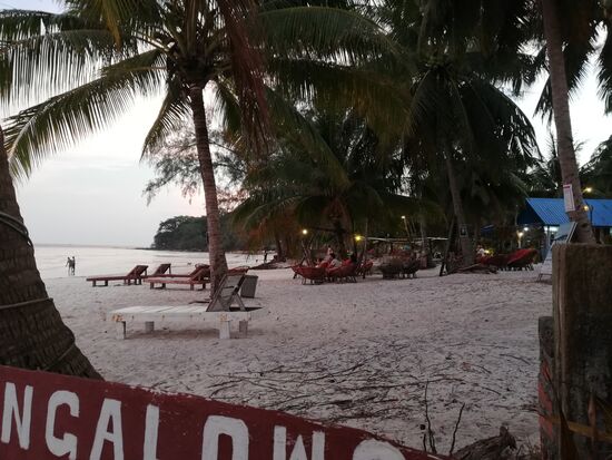 Die Antwort lautet "Ja!". Wir kamen in der Dämmerung an, konnten aber schon ahnen, dass es hier nicht schwer werden würde, den dringend benötigten Insel-Vibe zu bekommen. Der Coconut Beach, an dem wir uns einquartierten, sollte der entspannteste Strand der kleinen Insel sein, ohne groß Party und Tamtam, sondern mit Liegestühlen und Ruhe. Ohhh yeah! That's the stuff. Wir hauten uns ins Zelt, welches auf einem kleinen Plateau aufgestellt die ideale und spottbillige Unterkunft darstellte, und pennten erstmal bis zum nächsten Morgen durch.