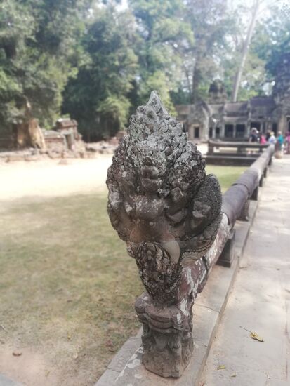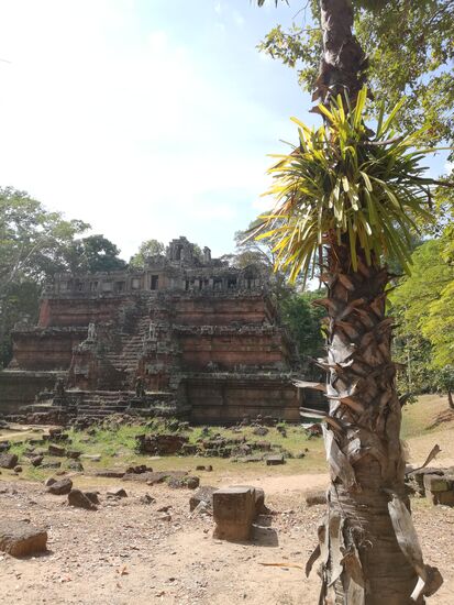 Danach ging es auf den "Outer Loop" zu den kleineren, weiter versprengten, aber ebenso sehenswerten Tempeln. Und wieder wurden wir von dem Einfallsreichtum der Baumeister vergangener Tage überrascht. Ein Tempel befand sich inmitten eines kleinen Sees, ein anderer war von Löwen- und Elefantenfiguren umgeben. Aber alle haben ihre strikte Rechtwinkligkeit und Symmetrie gemeinsam.