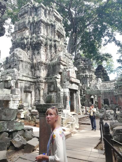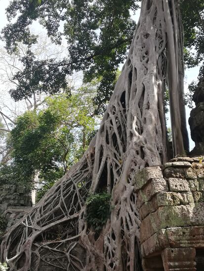 Am nächsten Morgen holte uns Sarat am Hotel ab, wir kauften die Tickets für Angkor, welche leider gar nicht mal so billig waren, und auf ging es zum ersten Tempel namens Ta Prohm, auch bekannt als der Tomb Raider Tempel. Bekannt ist der für die spektakulären Tropenbäumen, die die Ruinen überwuchern.