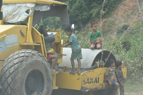 Samstag, den 2.11.19 Nach Luang Prabang wieder in fast rascher Fahrt, fast deswegen weil an der Baustelle am Staudamm ein großer Stau sich entwickelt hatte, der aber zu 80 % aus der Disziplinlosigkeit der Verkehrsteilnehmer stammte! Ebenso hat ein kleiner Erdrutsch für Verzögerung gesorgt, diesem wurde mit schwerem Gerät zu Leibe gerückt, eine Attraktion für die Kinder!