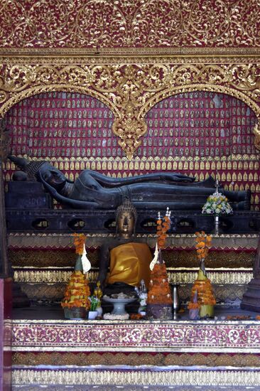 Hotel in Luang Prabang war das Mylaohome, welches Phout für uns gebucht hatte! Mit 31€ sehr preiswert, allerdings klein und etwas hellhörig, aber Spitzenfrühstück! Die große Anlage gehört zu den Projekten, welche die UNESCO als besonders schutzwürdig erklärt hat; in zwei Etagen überwiegend aus Holz gebaut, erklärt unter anderem die Hellhörigkeit. Wenn in der 1. Etage jemand schweren Schrittes unterwegs ist, denkt man darunter an Weltuntergang!