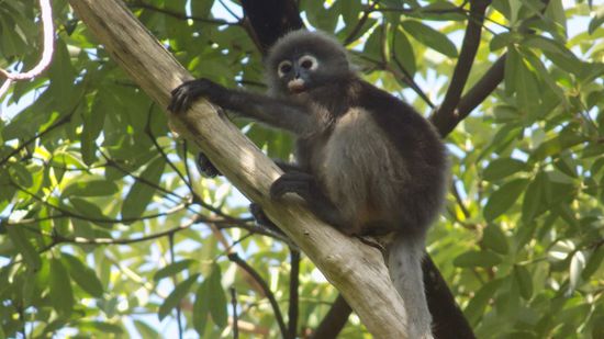 Die Jungtiere spielen in den Bäumen,
