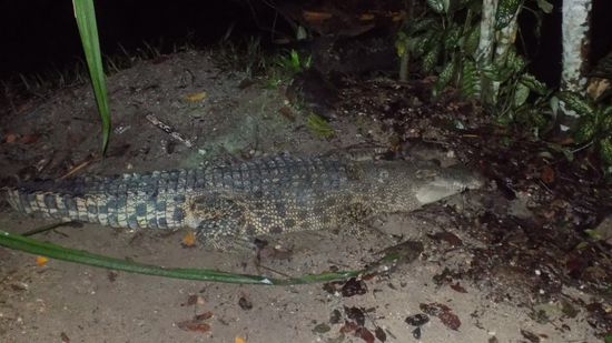 Am Ende der Rundfahrt verabschieden sich die anderen Besucher, unsere Frage, ob wir auch zu Fuss alleine durch den Zoo gehen dürfen, wurde mit einem ‚selbstverständlich‘ beantwortet. So streifen wir in der Dunkelheit durch den Zoo, besuchen die Krokodile,