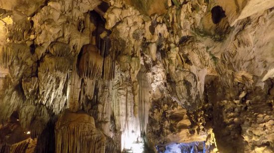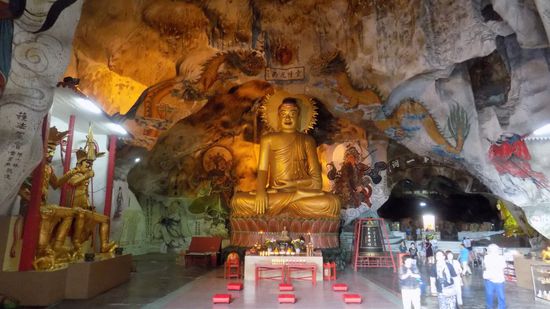 in dem riesige Tropfsteine einen natürlichen Schmuck zu den aufgestellten Buddhas bieten.