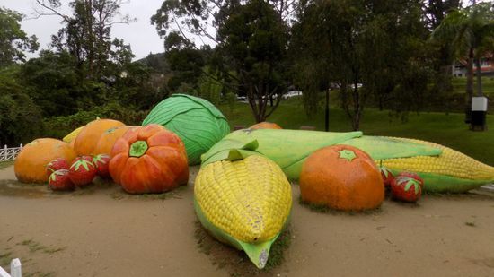 beziehen wir unser Nachtquartier, bewundern noch dieses Plastik/Beton/Gemüsekunstwerk,