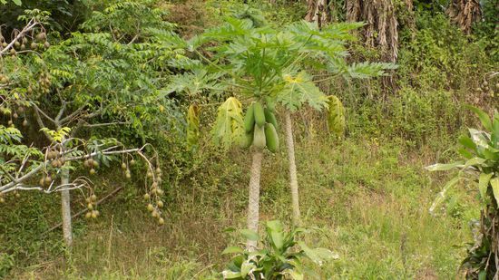 die echten sind noch nicht reif, dafür sehen wir aber unzählige dieser Papaya Bäume (Plantagen) am Strassenrand