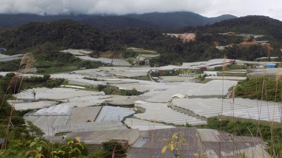 und fahren dann in die Cameron Highland. Plötzlich verändert sich die Landschaft, überall Plastikfolien,