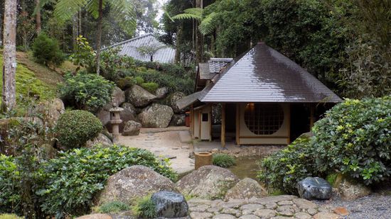 Ein Shuttlebus bringt die Besucher dann etwa 3km weiter zum japanischen Teil dieser Anlage, hier findet man das erste Japanische Tee Hause in einer tropischen Umgebung.